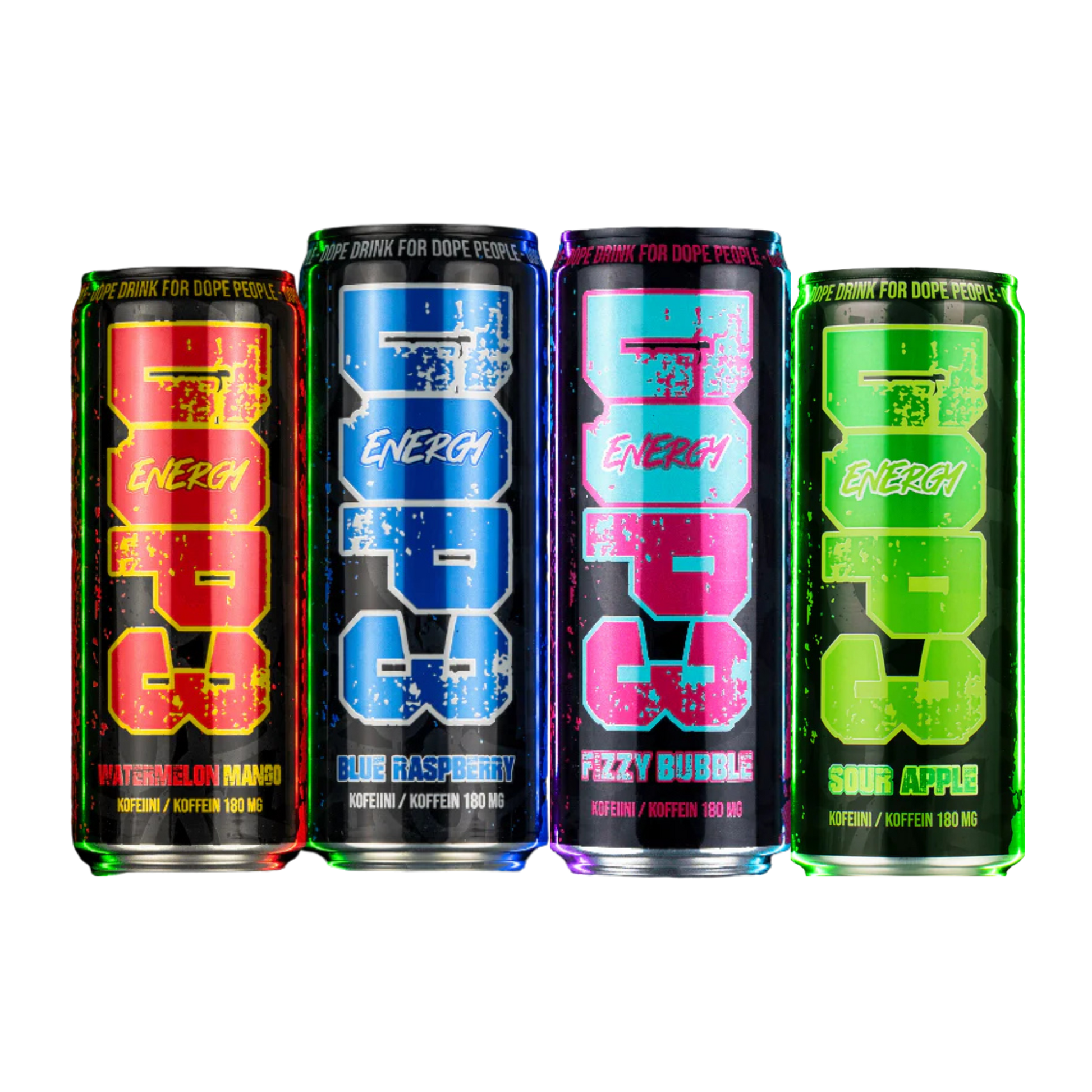 DOP3 bundle sisältää 4 erimakuista sokeritonta 330 ml DOP3-energiajuomaa - testaa kerralla supersuositut massasta erottuvat DOP3-energiajuomat.